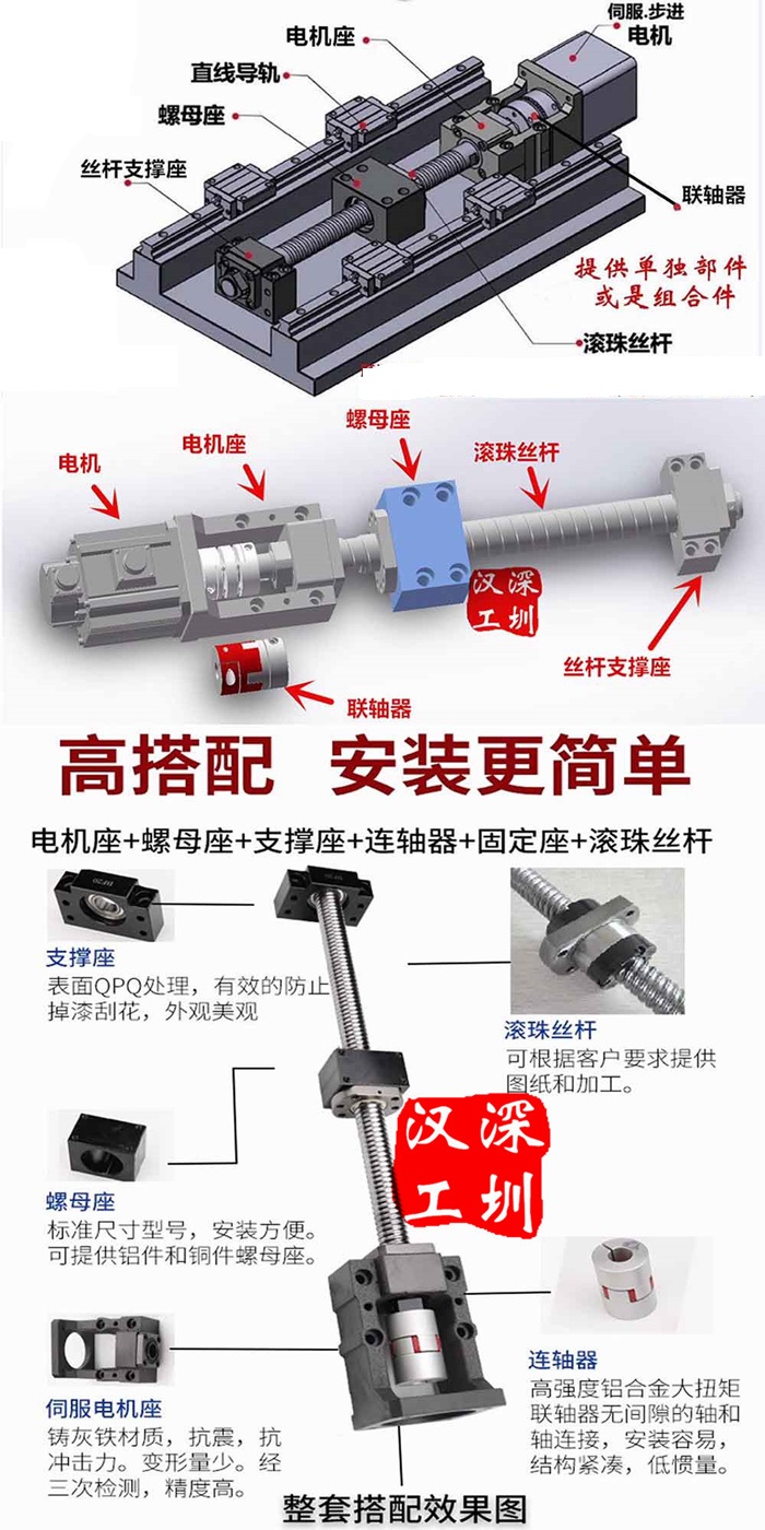 1、導軌滑塊、滾珠絲杠絲桿、電機座支撐座、直線模組等3d圖請聯系客服索取!