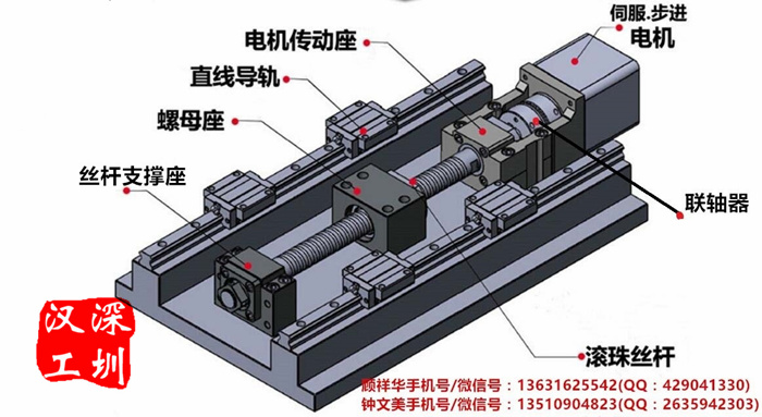 滾珠絲桿副是精密傳動部件,應由專業人員裝配、維修,安裝滾珠絲杠副需要專門的技能及必要的測量工具,在安裝過程中需要輕拿輕放井按一定的規范進行裝配。下面以采用標準支撐單元的一端固定一端支承安裝方式滾珠絲杠機構為例,深圳市漢工精密科技有限公司說明具體的裝配步驟: